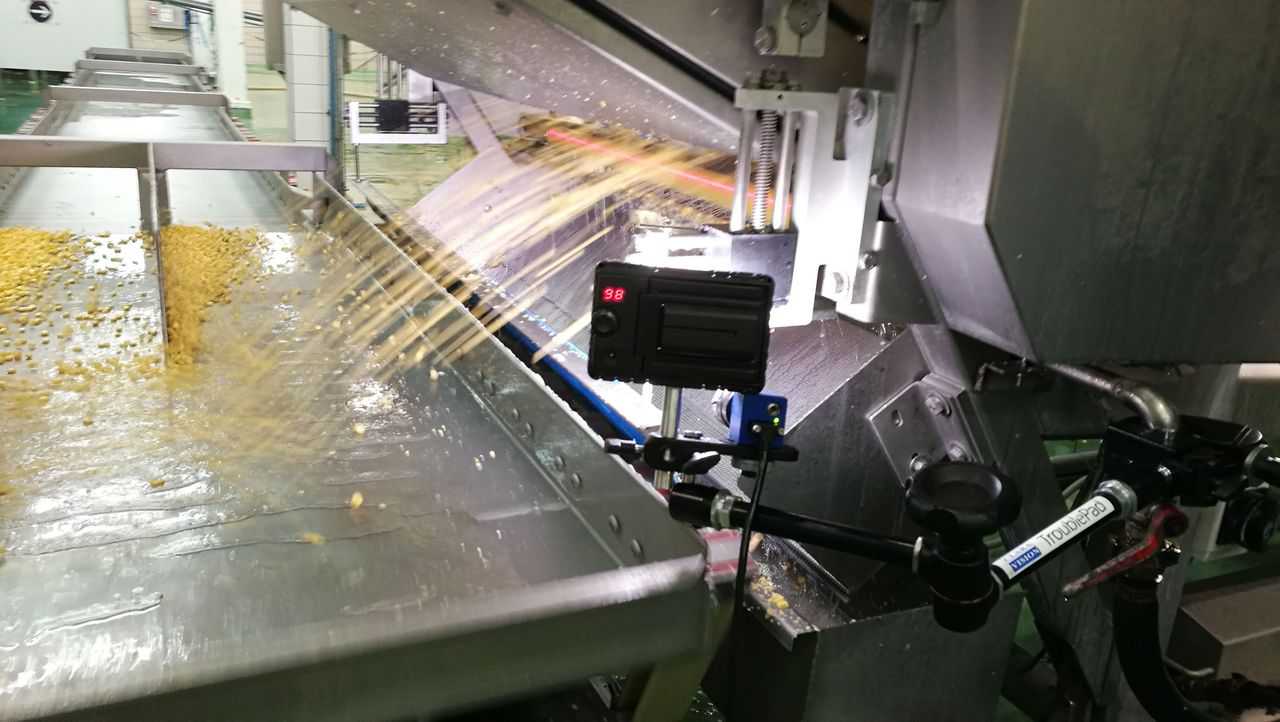 Manejo de la cámara de alta velocidad TroublePad por parte de un técnico de mantenimiento en una línea de embotellado de alta velocidad.